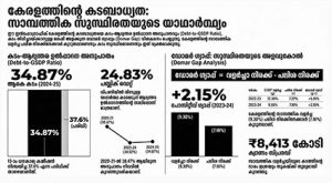 എന്നാൽ കേരളത്തിന്റെ കണക്കുകൾ എന്താണ് പറയുന്നത്? 2023-–24 ൽ കേരളത്തിന്റെ മൊത്തം ആഭ്യന്തര ഉൽപ്പാദനം (GSDP) 9.3% വളർച്ച നേടി, അതേസമയം കടത്തിന്മേലുള്ള പലിശ നിരക്ക് വെറും 7.16% മാത്രമായിരുന്നു. അതായത്, വായ്പയുടെ പലിശയേക്കാൾ 2 ശതമാനത്തിലധികം വേഗത്തിൽ നമ്മുടെ സമ്പദ്വ്യവസ്ഥ വളരുന്നുണ്ട്. അതിനാൽ തന്നെ ഇത് കടക്കെണിയല്ല, മറിച്ച് സാമ്പത്തിക സുസ്ഥിരതയുടെ വ്യക്തമായ ലക്ഷണമാണ്. കോവിഡ്- 19 മഹാമാരിയുടെ സമയത്ത് (2020–-21) 38.47% ആയി കുതിച്ചുയർന്ന കടം-–ജിഎസ്ഡിപി അനുപാതം 2023–-24 ൽ 34.52% ആയി കുറയുകയും ചെയ്തു. ഒരു യഥാർത്ഥ കടക്കെണി ഒരിക്കലും തനിയെ പരിഹരിക്കപ്പെടില്ല, എന്നാൽ കേരള സർക്കാരിന്റെ മികച്ച ധന മാനേജ്മെന്റിന്റെ ഫലമായി സംസ്ഥാനത്തിന്റെ സാമ്പത്തിക സ്ഥിതി മെച്ചപ്പെടുകയാണുണ്ടായത്.
