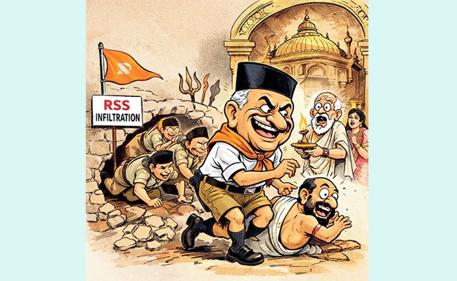 ക്ഷേത്രങ്ങളിൽ ഉത്സവങ്ങൾ നടക്കുന്ന കാലമാണിപ്പോൾ. കൊല്ലവർഷത്തിൽ ധനുമാസം മുതൽ മഴക്കാലത്തിന്റെ ആരംഭംവരെ തുടർച്ചയായി ഉത്സവങ്ങളാണ്. പരീക്ഷകൾ കഴിഞ്ഞ് വേനലവധിക്ക് സ്കൂൾ പൂട്ടുന്നതും ഇതേ കാലത്താണ്. കേരളത്തിൽ അസംബ്ലി പാർലമെന്റ് തിരഞ്ഞെടുപ്പുകൾ നടക്കുന്നതും ഇതേ കാലത്താണ്. ഇവ തമ്മിൽ എന്താണ് ബന്ധമെന്ന് ചോദിക്കാം. ക്ഷേത്രപ്പറമ്പുകളിലേക്ക് ജനങ്ങൾ ഒഴുകിയെത്തുന്നത് ഈ സമയത്താണ്. മഴക്കാലത്ത് ക്ഷേത്രങ്ങളിലെ വരവ് കുറയും. തൃക്കാക്കരയപ്പനെ മാറ്റിനിർത്തിയാൽ ഓണം ഒരു ക്ഷേത്രോത്സവമല്ലല്ലോ! ക്ഷേത്രപ്പറമ്പുകളിൽ ആൾ കൂടുമ്പോൾ അവിടെ കുട്ടികളുമെത്തും – തൊഴാനല്ല കളിക്കാൻ; കുളങ്ങളിൽ കുളിക്കാൻ. അത്തരം കുട്ടികളെ സംഘടിപ്പിച്ച് കിളിത്തട്ടും കബഡിയും ഖോ ഖോയും കളിപ്പിക്കുകയും പുരാണ കഥകൾ പറഞ്ഞുകൊടുക്കുകയും കീർത്തനങ്ങൾ ചൊല്ലിക്കുകയും ചെയ്താൽ രക്ഷിതാക്കൾക്കും സന്തോഷമായി. ക്രമേണ അവരെ ഉത്സവങ്ങൾ നടത്തുന്നതിൽ പങ്കാളികളാക്കാം; പൊളിഞ്ഞുപോയ ക്ഷേത്രങ്ങൾ പുനരുദ്ധരിക്കാം; ക്ഷേത്രസംരക്ഷണ സമിതികൾ ഉണ്ടാക്കാം; കേരളത്തിൽ ആർഎസ്എസ് വളർന്നുവന്നത് ഇങ്ങനെയാണ്.
