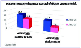 ♦ 2022–23 ധനകാര്യവർഷത്തിൽ ഇന്ത്യൻ കുടുംബങ്ങളുടെ മൊത്തം സമ്പാദ്യം (മിച്ചം) ജിഡിപിയുടെ 5.1% ആണ്; ഇത് കഴിഞ്ഞ 23 വർഷത്തിനിടയിലെ ഏറ്റവും കുറഞ്ഞ നിരക്കാണ്. മഹാമാരിയുടെ കാലത്ത് തൊഴിലും വരുമാനവും ഇല്ലാതായതുമൂലമാണ് പാവപ്പെട്ടവരുടെ തുച്ഛമായ സമ്പാദ്യം പോലും നഷ്ടപ്പെട്ടത്; തങ്ങൾക്ക് വീണ്ടും പിടിച്ചുനിൽക്കാനും കരകയറാനും പറ്റുമെന്ന സ്ഥിതിയിൽ അവരെത്തിയപ്പോൾ കുത്തനെയുണ്ടായ വിലക്കയറ്റം അവരുടെ സമ്പാദ്യത്തെ പിന്നെയും തട്ടിയെടുത്തു; കാരണം അവരുടെ വരുമാനം വിലക്കയറ്റത്തിന് ആനുപാതുകമായി വർധിച്ചിരുന്നില്ല.