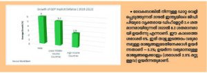 എന്താണ് ജിഡിപി ഡിഫ്ളേറ്റർ ? വിലക്കയറ്റത്തെക്കുറിച്ച് കണക്കാക്കാനുള്ള അളവുകോൽ എന്ന നിലയിൽ ഉപഭോക്തൃവില സൂചികയെക്കാൾ കൂടുതൽ സമഗ്രതയുള്ളതാണ് ജിഡിപി വില ഡിഫ്ളേറ്റർ; കാരണം അത് ഏതെങ്കിലും ഒരു കൂട്ടം ഉൽപ്പന്നങ്ങളുടെ വിലയെ അടിസ്ഥാനമാക്കിയുള്ളതല്ല; മറിച്ച് സമ്പദ്ഘടനയിലെ മൊത്തം വിലയിൽ വരുന്ന മാറ്റത്തെ അടിസ്ഥാനമാക്കിയാണ് കണക്കാക്കുന്നത്. |